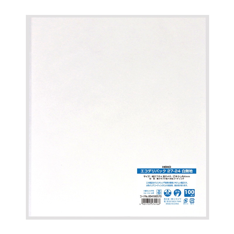 HEIKO 耐油平袋 エコデリパック 27-24 白無地 100枚/袋
