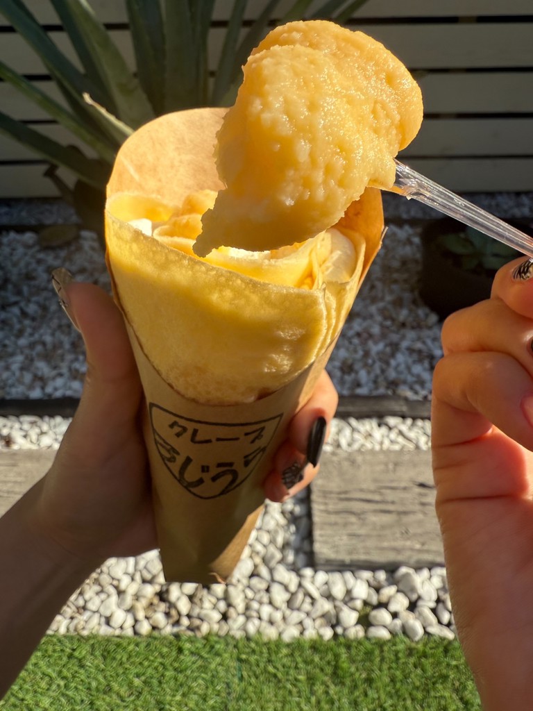 恣意といえば、私どものクレープ生地は柔らかい為、入れる時に気をつけないと両ふちのかど部分に生地が引っかかり穴が空いてしますところかな