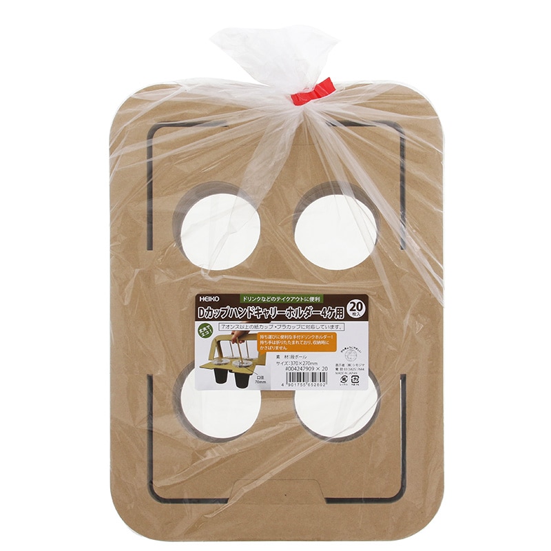 HEIKO カップホルダー Dカップハンドキャリーホルダー 4個用 クラフト 20枚/袋