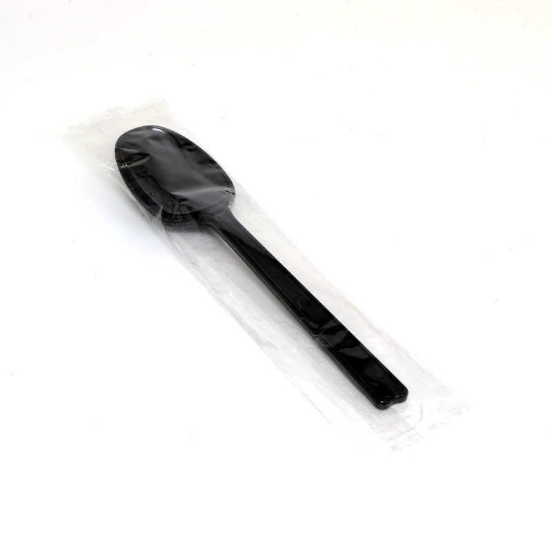 HEIKO プラスチックスプーン 16cm 個包装 黒 100本/袋
