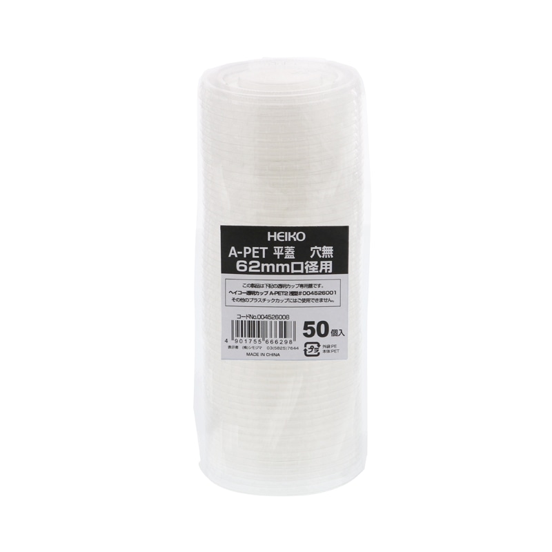 HEIKO 透明カップ A-PET 平蓋 口径62mm用 穴無 透明 50個/袋