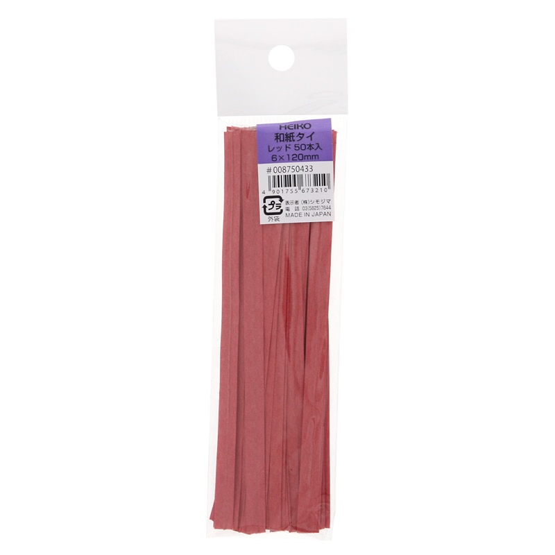 HEIKO 和紙タイ 6mm幅×12cm レッド 50本/束