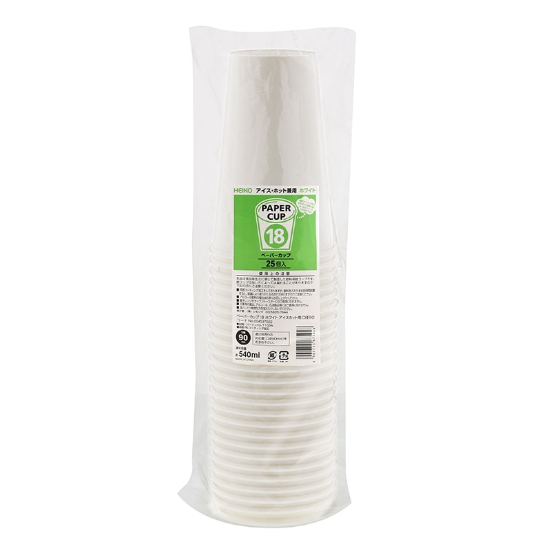 HEIKO 紙コップ(ペーパーカップ) アイス・ホット兼用 18オンス 口径90mm ホワイト 25個/袋