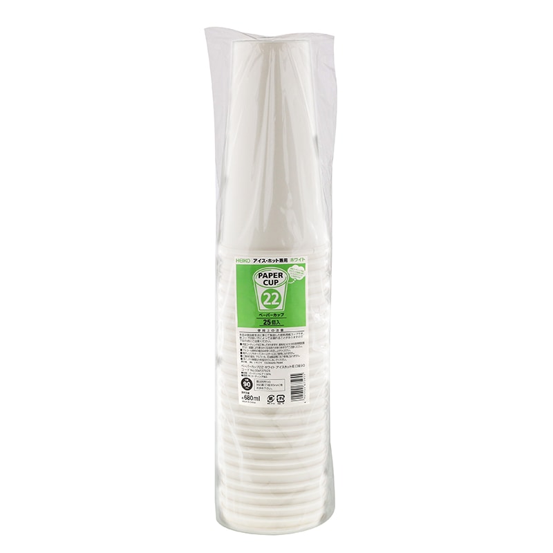 HEIKO 紙コップ(ペーパーカップ) アイス・ホット兼用 22オンス 口径90mm ホワイト 25個/袋