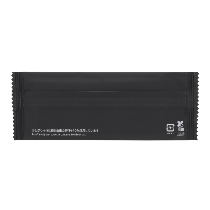 本体にバイオマス10%配合した、環境にやさしいおしぼりです。高級感のある、中身が透けない黒い個包装。●入数:200枚