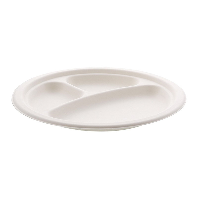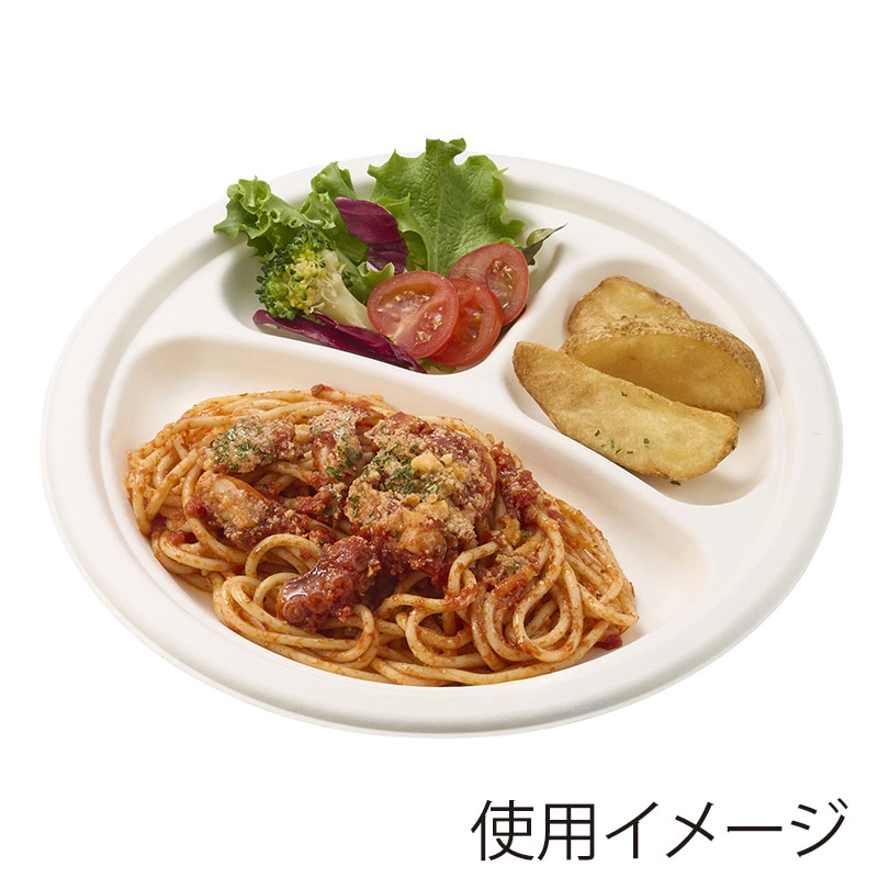 HEIKO 紙皿 業務用 バガスペーパーウェア 深皿プレート ホワイト 3仕切 23cm 50枚/袋