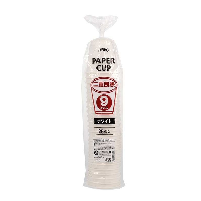HEIKO 紙コップ 二重断熱カップ 9オンス 口径90mm ホワイト 25個/袋