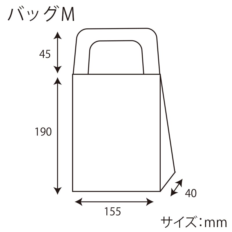 幅155×マチ40×高190(+持ち手45)mm