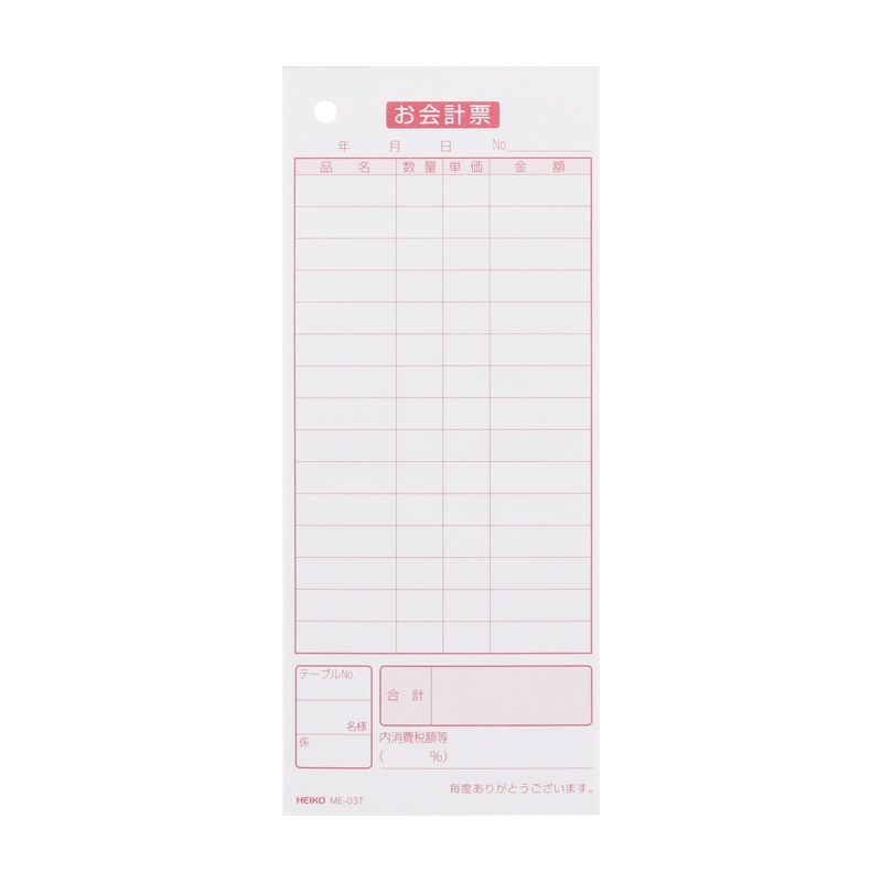 HEIKO お会計票 ME-03T 5冊(100枚×5冊)