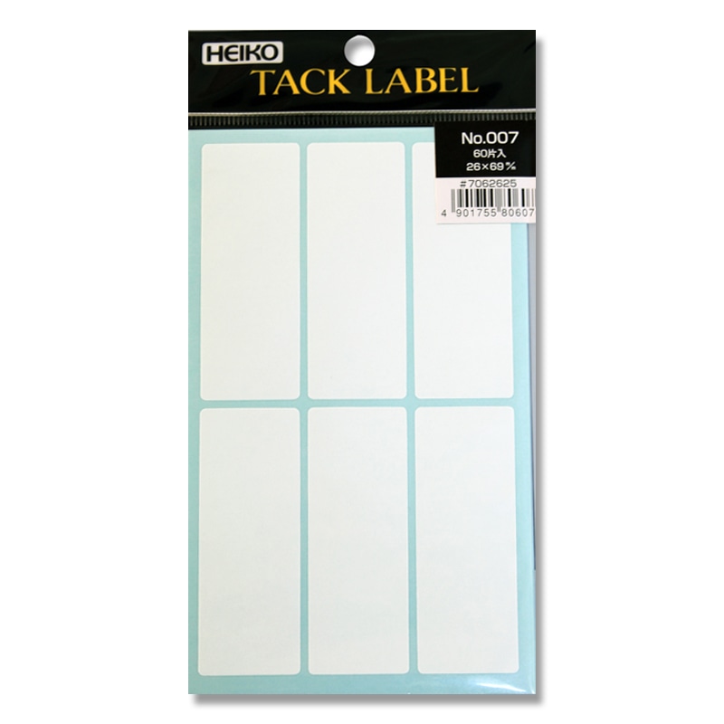 HEIKO タックラベル(シール) No.007 白無地 26x69mm 60片/束