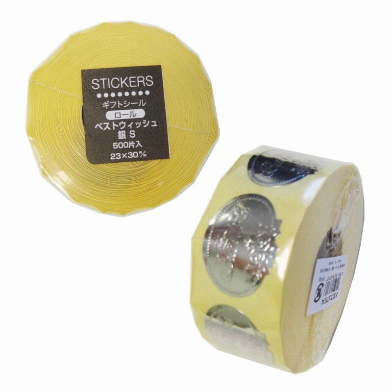 HEIKO ギフトシール(ロールシール) ベストウィッシュ銀 S 500片/巻