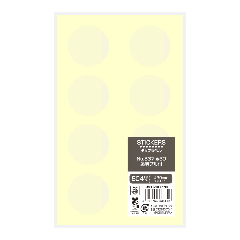 HEIKO タックラベル(シール) No.837 φ30 透明プル付 504片/束