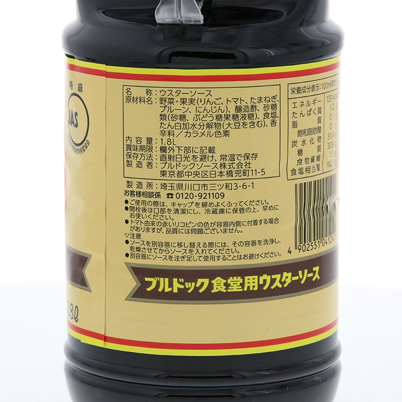 ブルドックソース ブルドッグ食堂用 ウスターソース 1.8L 常温 1個※軽(ご注文単位1個)※注文上限数12まで【直送品】