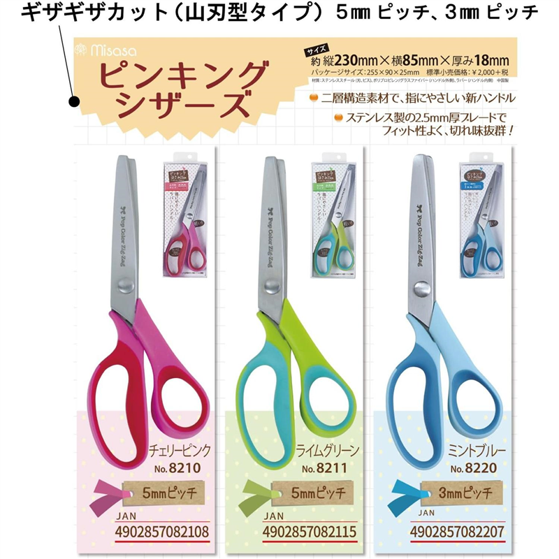 ミササ ソーイングノーション ピンキングはさみ 23cm ミントブルー 3mmピッチ 8220 1個(ご注文単位1個)【直送品】
