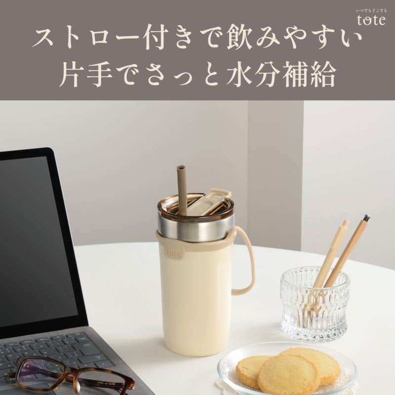 和平フレイズ トート ストロー付 3wayタンブラー 520ml アイボリー RH-1758 1個(ご注文単位1個)【直送品】