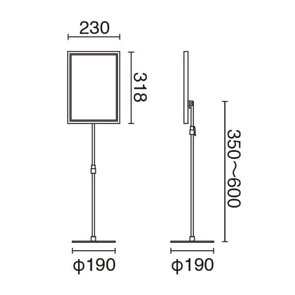 外寸φ190×H350~600mm/フレーム:W230×D18×H318mm