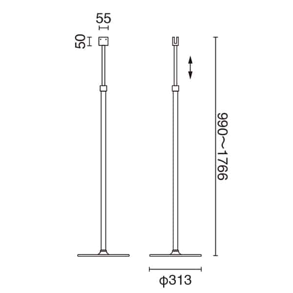 φ313×H990~1766mm/支柱サイズ約W55mm