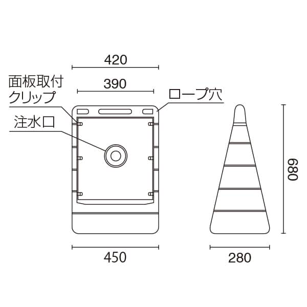 W450×D280×H680mm/ロープ穴:約φ6mm