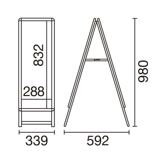 外寸:W339×D592×H980mm/有効表示面:W288×H832mm