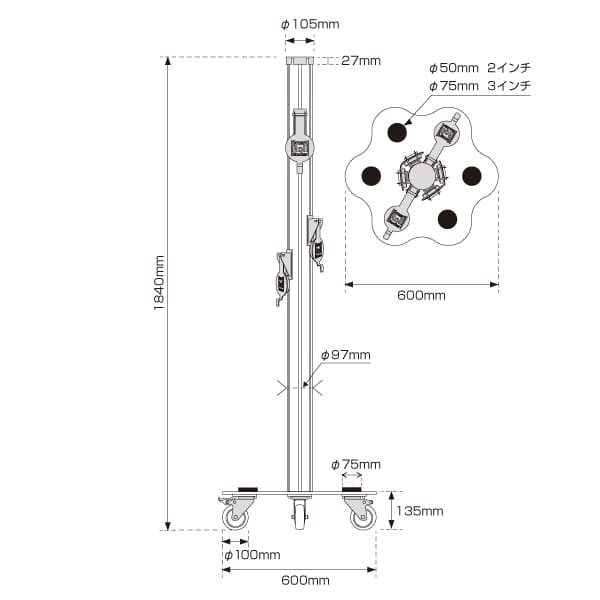 本体外寸(総高):1840mm(キャスター含む)