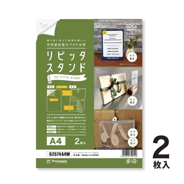 友屋 POP台紙 リピッタスタンド A4 ホワイト 62574A4W 1パック(ご注文単位1パック)【直送品】
