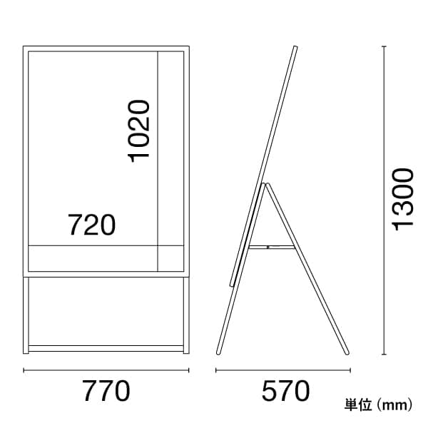 外寸:W770×D570×H1300mm/有効表示面:W720×H1020mm
