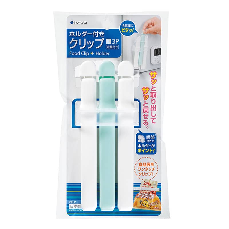 イノマタ化学 ホルダー付きクリップ L 3本入 ホワイト&ブルー 6216 1パック(ご注文単位1パック)【直送品】