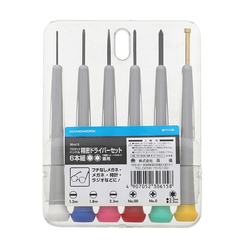 高儀 プラスチックハンドル 精密ドライバーセット 6本組 ヘクスローブ入 1個(ご注文単位1個)【直送品】