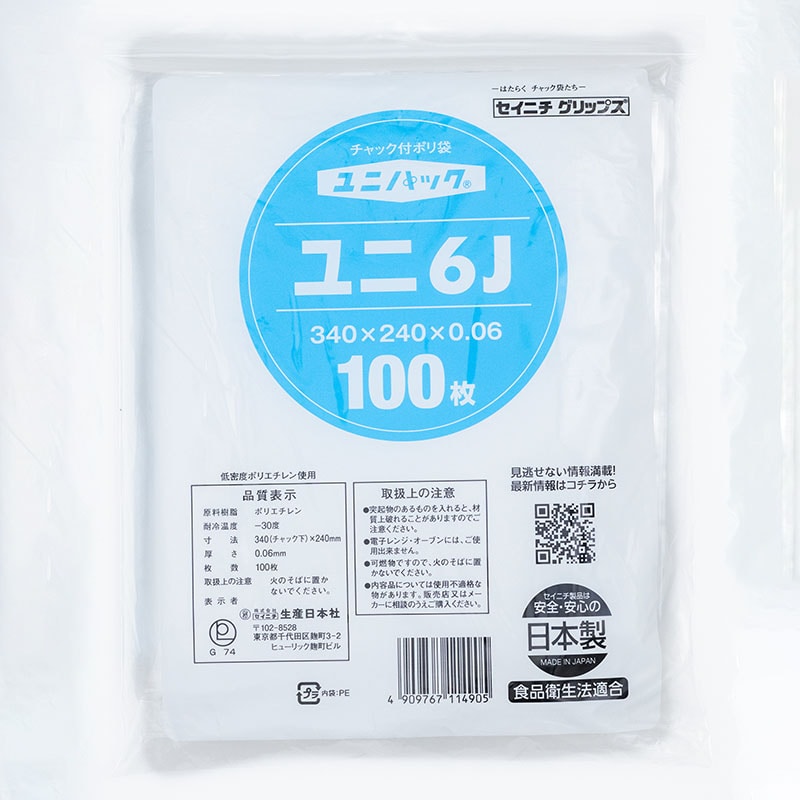 生産日本社 セイニチ チャック付きポリ袋 ユニパック 6J 100枚/袋