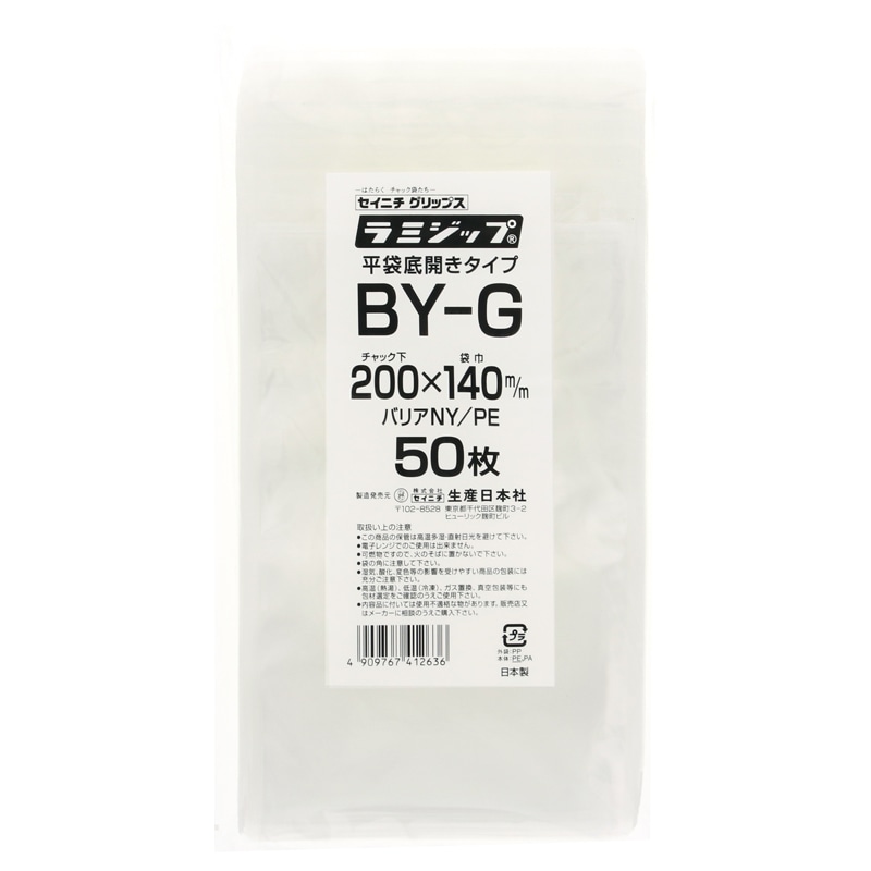 生産日本社 セイニチ ラミジップ 平袋 NY バリアタイプ (底開きタイプ) BY-G 50枚/袋