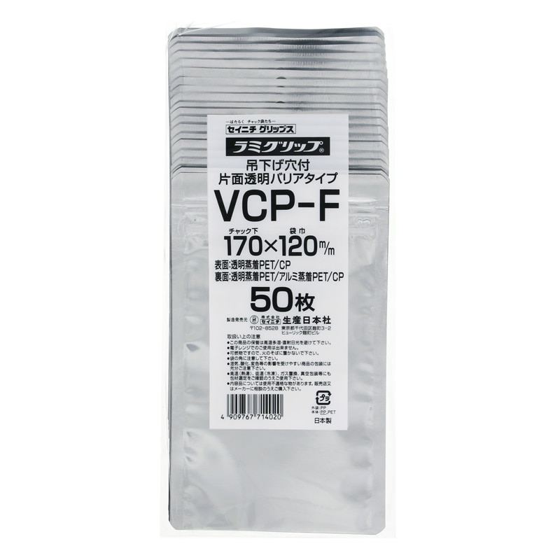 生産日本社 セイニチ ラミグリップ 平袋 底開きタイプ 吊り下げ穴付き 片面透明バリアタイプ VCP‐F 50枚/袋