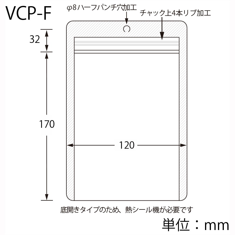 チャック上32+チャック下170×袋巾120mm/吊り下げ穴8mm