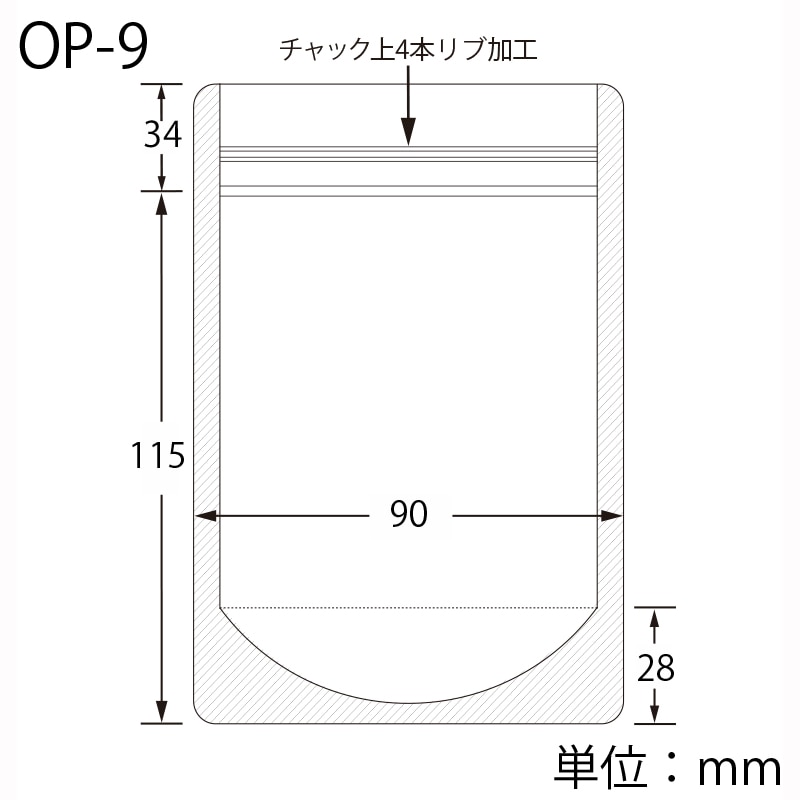 チャック上34+チャック下115×袋巾90(ガゼット巾28)mm
