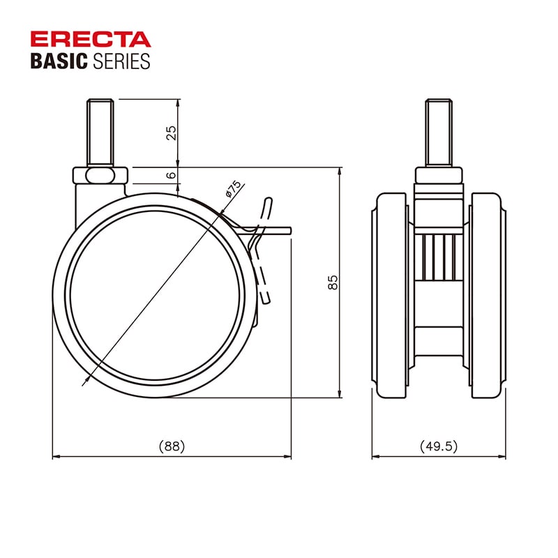 エレクター シェルフパーツ ベーシック 双輪キャスター ストッパー付75mm ブラック 2個入 1セット(ご注文単位1セット)【直送品】