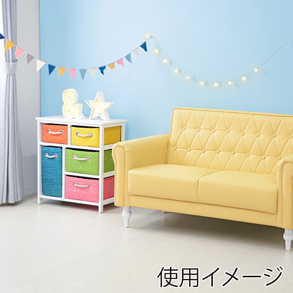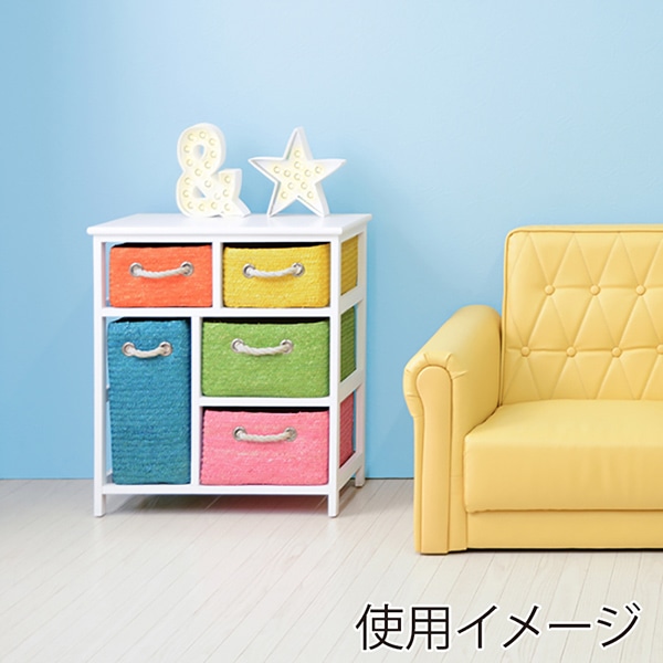 - 引き出しがカラフルな収納ボックスです。引き出しが色分けされているので子供のお片付けトレーニングにぴったり。様々なサイズの引き出しが計5杯あるので子供のおもちゃの他にも、引き出しの中は布で包まれるようになっており、背板がなく熱や湿気がこもりにくくなっているため、ランドリールームのタオルや衣類なども収納できます。●引出し小:幅20×奥行23×高さ11cm●引出し中:幅25×奥行23×高さ15cm●引出し大:幅16×奥行23×高さ33.5cm●完成品