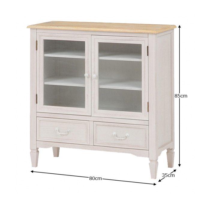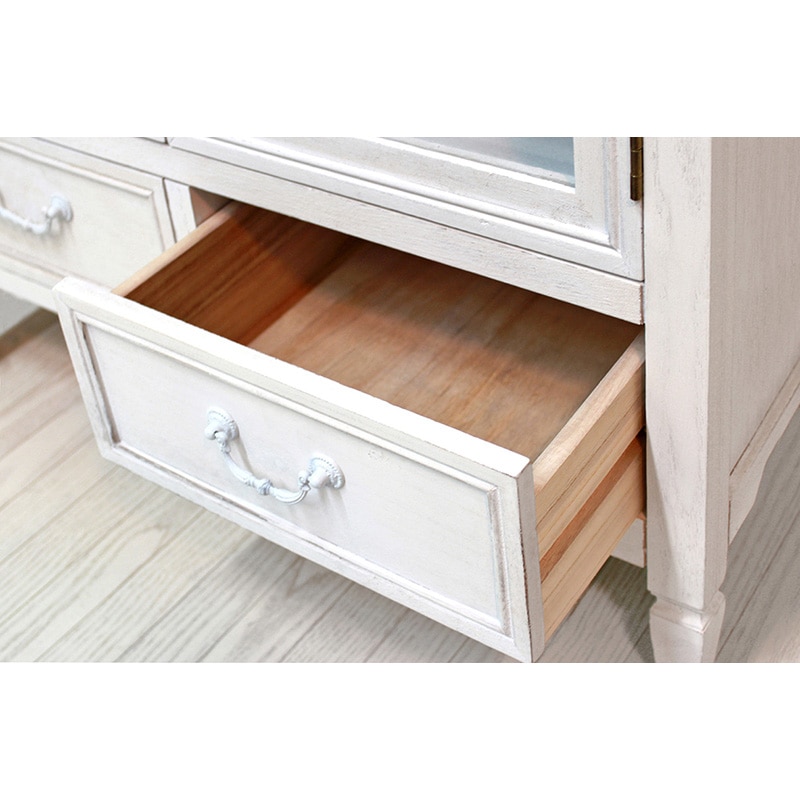 - 優しい雰囲気と高級感を感じられるアンティーク調の家具です。淡いツートンの木目がどこかノスタルジックな懐かしい雰囲気を演出します。取っ手もかすれを表現したアンティークデザインを使用し、更に雰囲気を楽しませてくれます。床への傷を軽減するフェルトシール付き。アンティーク調の塗装を施しています。アンティーク調の塗装は職人が一品一品手作業で、程よく使い古したような風合いを表現する手法です。その為、一品一品塗装の色や風合いが異なります。●引出内寸:約幅29×奥行27×深さ10cm●扉内内寸:約幅69×奥行30×深さ48cm●可動棚:2枚/5cmピッチ6段階