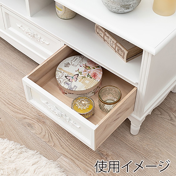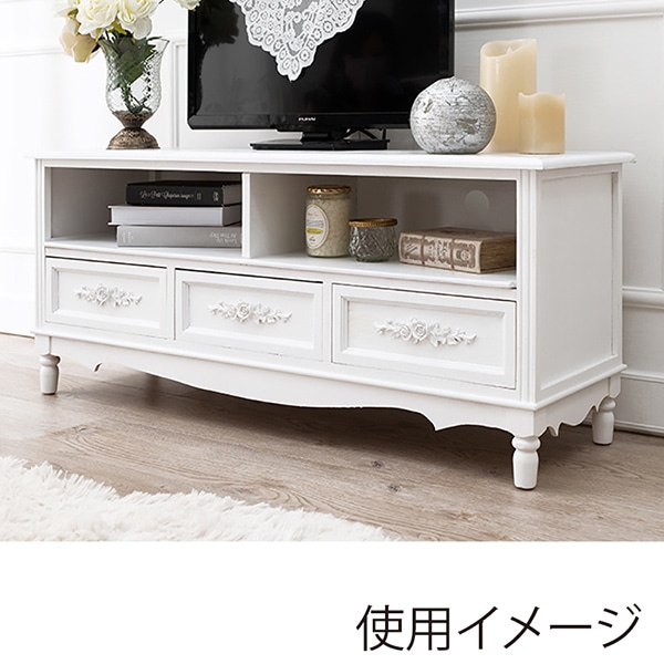 - コロンとした脚と、繊細な浮き彫りが上品なテレビ台。42Vまでのテレビに対応。テレビ台以外にメイク台やローボードとしても使えます。●引出内寸:約幅28.5×奥行27×深さ10cm●オープン部内寸:約幅47×奥行30×高さ13cm●完成品