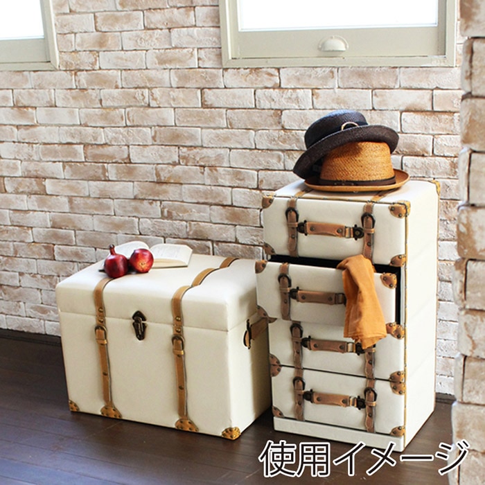 萩原 トランク風収納スツール 幅60cm アイボリー MC-6001IV 1台(ご注文単位1台)【直送品】
