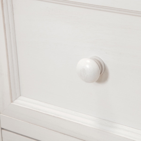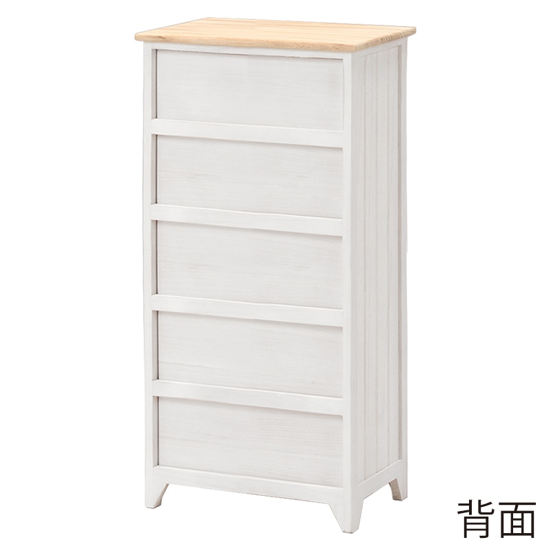 - シャビーホワイトの本体にアンティーク調ナチュラルな天板が映える、シンプルチェスト。引出しは深さがあるので、背の高いものも収納することができます。コンパクトなので一人暮らしやワンルームなどの狭い部屋はもちろん、寝室、リビング、ダイニング、脱衣所、洗面所、ランドリールーム、玄関、廊下などいろいろな場所に設置いただけます。アンティーク調の塗装は職人が一品一品手作業で、程よく使い古したような風合いを表現する手法です。この為、一品一品塗装の色や風合いが異なります。