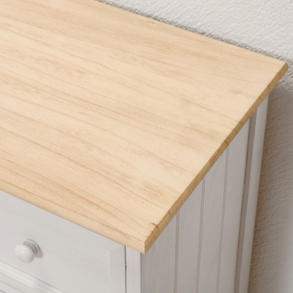 - シャビーホワイトの本体にアンティーク調ナチュラルな天板が映える、シンプルチェスト。●引出小内寸:約幅23×奥行32×高さ4.5cm●引出内寸(中):約幅23×奥行32×高さ8.5cm●引出大内寸:約幅23×奥行32×高さ12.5cm