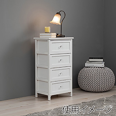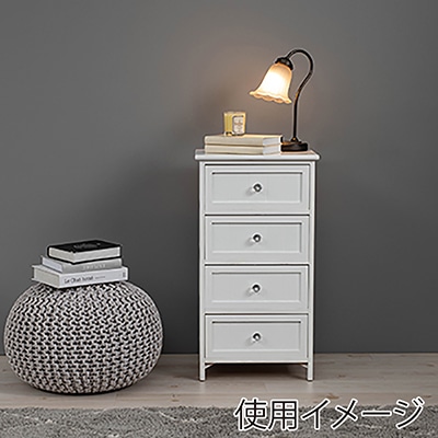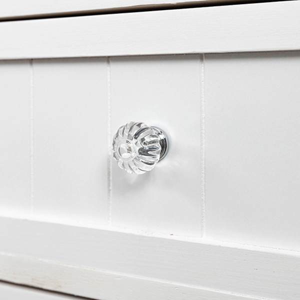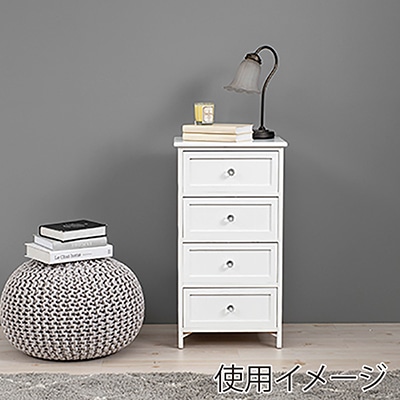 - 使いまわしの良いホワイトチェスト。クリスタル調取っ手が引き立ちます。直線的でシャープなデザインはモダンで洗練された雰囲気を演出。※プラスドライバーをご用意下さい●引出内寸:約幅32.5×奥行24×深さ13.5cm