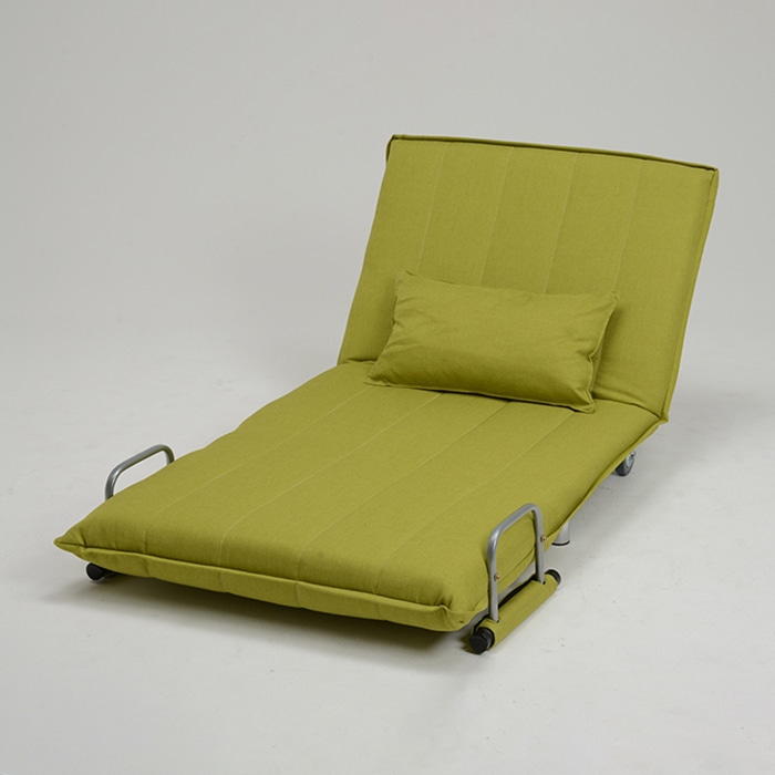 - ソファ、カウチソファー、ベッドの1台3役のソファーベッド。キャスター付きなので移動もらくらく。しかもストッパー付きです。ソファーは14段階リクライニング。お好みの角度でくつろげます。クッション付き。●背:14段リクライニング●組立式(脚部、肘部分)