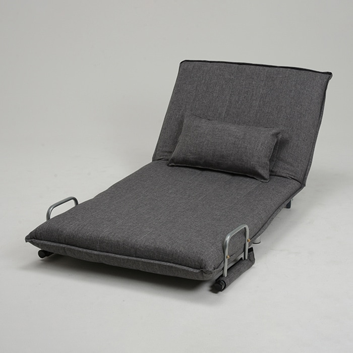- ソファ、カウチソファー、ベッドの1台3役のソファーベッド。キャスター付きなので移動もらくらく。しかもストッパー付きです。ソファーは14段階リクライニング。お好みの角度でくつろげます。クッション付き。●背:14段リクライニング●組立式(脚部、肘部分)