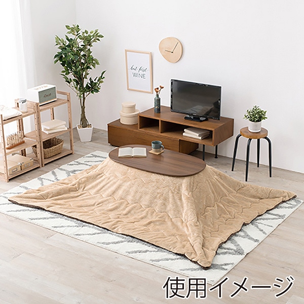 萩原 カルミナ折りたたみ楕円形こたつ うす掛け布団セット ブラウン×ベージュ カルミナ950WN+ビケ950BE 1セット(ご注文単位1セット)【直送品】