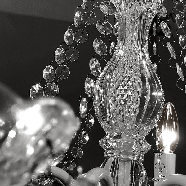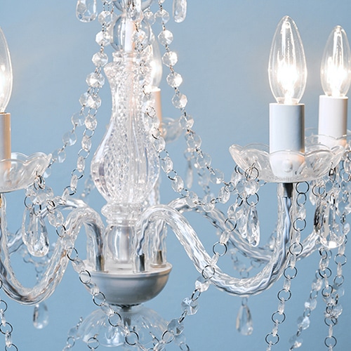 - お部屋を特別な空間に。設置が簡単なシャンデリア。●ソケット部+チェーン長:45cm●電球5個付(E17/40W)●組立式