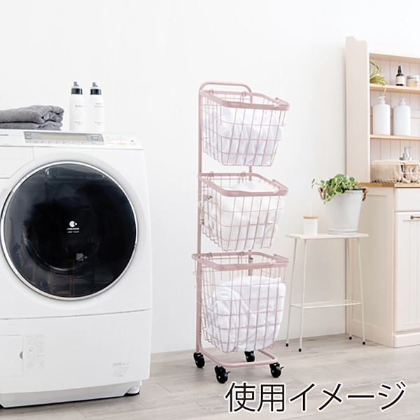- カゴに洗濯物やランドリー用品をひとまとめに収納できます。縦型収納なので無駄なスペースを取らず、一人暮らしはもちろん、物が多いファミリーにも嬉しい省スペースラックです。またランドリー用品以外にも、キッチン収納、リビング収納、子ども部屋のおもちゃ入れに使うことも。デザインがシンプルで使い勝手も良いので、色々な場面で活躍します。バスケットはスタッキング可能です。キャスターはストッパー付き。●キャスター付●組立式(工具付属)