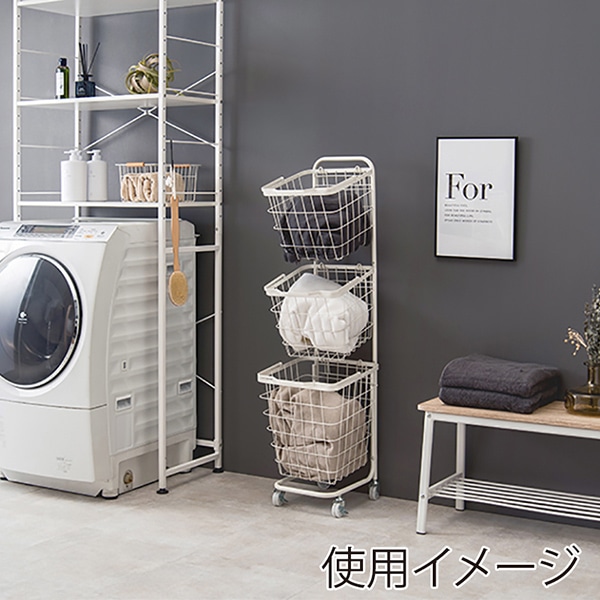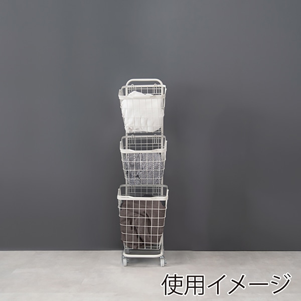 - カゴに洗濯物やランドリー用品をひとまとめに収納できます。縦型収納なので無駄なスペースを取らず、一人暮らしはもちろん、物が多いファミリーにも嬉しい省スペースラックです。またランドリー用品以外にも、キッチン収納、リビング収納、子ども部屋のおもちゃ入れに使うことも。デザインがシンプルで使い勝手も良いので、色々な場面で活躍します。バスケットはスタッキング可能です。キャスターはストッパー付き。●キャスター付●組立式(工具付属)
