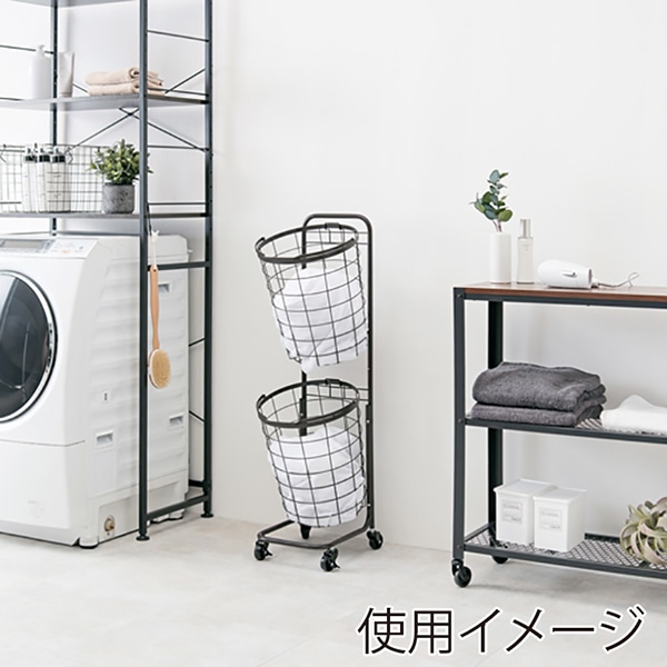 - カゴに洗濯物やランドリー用品をひとまとめに収納できます。縦型収納なので無駄なスペースを取らず、一人暮らしはもちろん、物が多いファミリーにも嬉しい省スペースラックです。またランドリー用品以外にも、キッチン収納、リビング収納、子ども部屋のおもちゃ入れに使うことも。デザインがシンプルで使い勝手も良いので、色々な場面で活躍します。バスケットはスタッキング可能です。キャスターはストッパー付き。●キャスター付●組立式(工具付属)