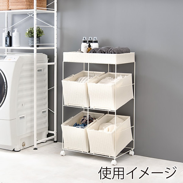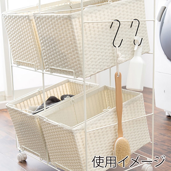 - 色柄物や汚れた洗濯物を分けて溜められるランドリーワゴン。バスケットが斜めになっているので衣類を入れやすい構造です。●キャスター付
