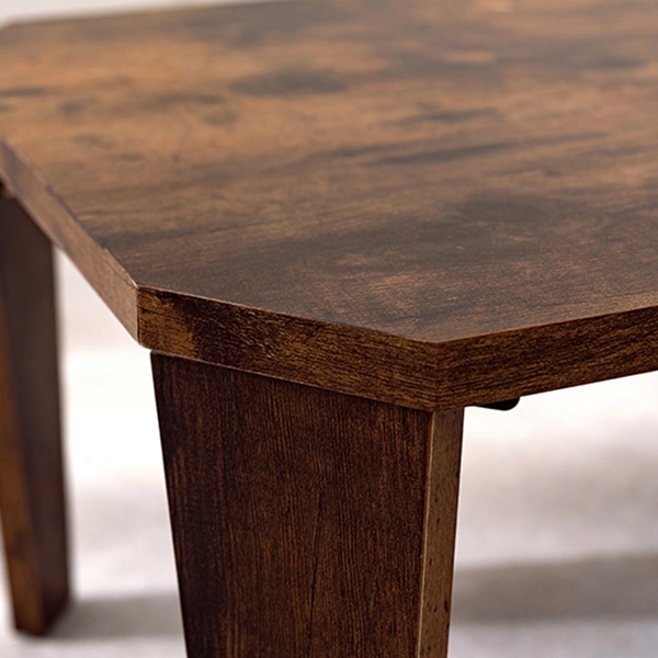 - スタイリッシュな八角形のセンターテーブル。まるで天然木のような古木調の色合いと木目感の再現にこだわりました。●折りたたみ式